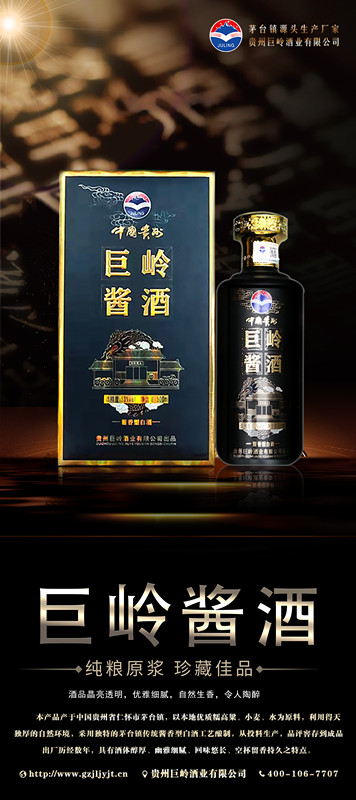 貴州巨嶺酒業(yè)有限公司,座落于聞名世界的古鎮(zhèn),國酒之鄉(xiāng)“茅臺鎮(zhèn)”。與“國酒茅臺”共享得天獨厚的氣候、土壤、水源、以及微生物群等自然資源;《巨嶺酒業(yè)》老作坊前身“巨嶺燒坊”,經過多年的傳承,秉承先輩們代代相傳的古法釀造工藝,歷經幾代人的延續(xù)和釀酒發(fā)展,奠定了《巨嶺酒業(yè)》發(fā)展的堅實基礎。